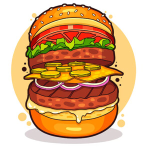 Burger, lattuga, pomodoro, cheddar, cipolla, salsa burger e contorno di patatine o insalata